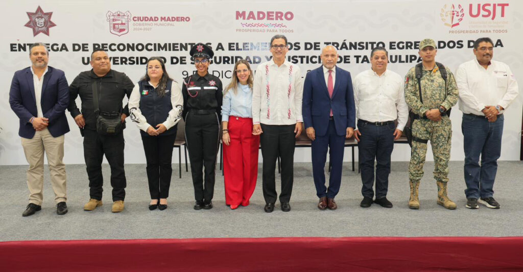 El presidente municipal Erasmo González Robledo reconoció de manera histórica la incorporación de 30 nuevos agentes a la dirección de Tránsito; esto tras haber concluido su formación profesional en la Universidad de Seguridad y Justicia de Tamaulipas. Destacó su decisión de prepararse y asumir con seriedad el compromiso de servir a la comunidad. Ciudad Madero los recibe con orgullo, incorporándolos a un entorno que valora la profesionalización, la seguridad y una nueva perspectiva del servicio público.